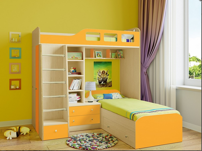 Когда вы хотите уйти от стандартных решений при обустройстве комнаты, двухъярусная кровать Астра 4 станет идеальным решением. Нестандартное положение мест для сна, наличие выдвижных ящиков, которые снабжены прочными выкатными механизмами, возможность максимально комфортно организовать пространство, благодаря книжным полкам и наличию прикроватного столика.