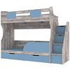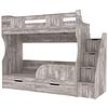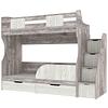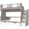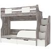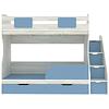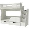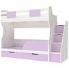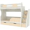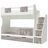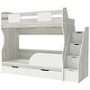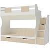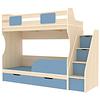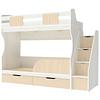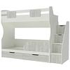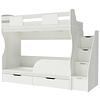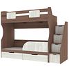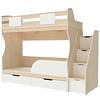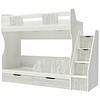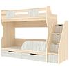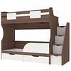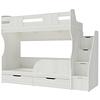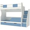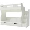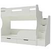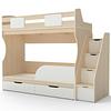 Удобная, безопасная лестница со встроенными полочками для книг и игрушек и комфортная высота кровати. Кровать имеет также два выдвижных ящика для хранения белья или игрушек. Правый или левый вариант расположения лестницы.