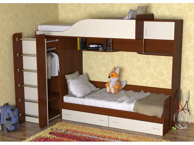 Детский уголок с двухъярусной кроватью и встроенным шкафом для одежды. Двухъярусная кровать Дуэт-3 сочетает в себе массу функционала и экономии места в детской комнате.