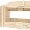 Под кроватью нижнего яруса установлены ящики для постельного белья.