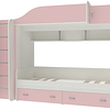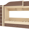 Главным преимуществом детской двухъярусной кровати Дуэт-3, является выдвижной шкаф для одежды. Шкаф расположен под спальным местом верхнего яруса, дополнительно укрепляя верхний ярус кровати. Шкаф легко выдвигается, за счет мощных металлических направляющих и колесиков. В шкафу, под детской двухъярусной кроватью, есть штанга для развешивания одежды на плечики. Штанга 410 мм. Внизу шкафа вместительная полка. Над спальным местом нижнего яруса, детской кровати размещена полка, с распашной дверкой. Размер полки в высоту 284 мм, глубина 190 мм.