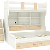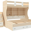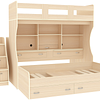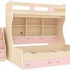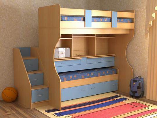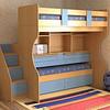 Мебель для детской комнаты рассчитана на двух детей. Включает в себя два рабочих места (стола), комод (лестница) и две кровати с большими вместительными ящиками