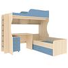 Детский уголок с двухъярусной кроватью и письменным столом для детей. Двухъярусная кровать Дуэт-5 сочетает в себе массу функционала и экономии места в детской комнате. Детская двухъярусная кровать для двоих детей занимает места не больше, чем для одного ребенка. Нижний ярус с кроватью не зависим от кровати чердака. Кровать нижнего яруса можно установить как параллельно верхнему ярусу, так и перпендикулярно, сбоку верхнего яруса.