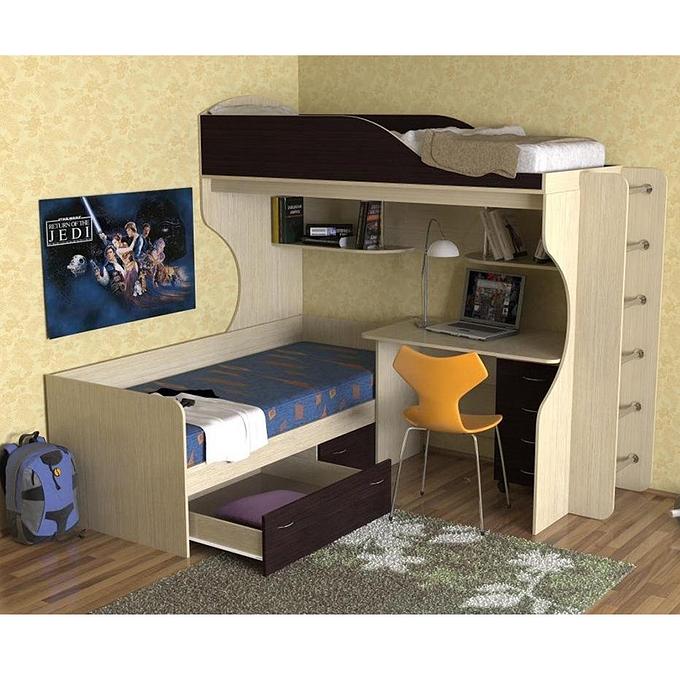 Главной особенностью детской двухъярусной кровати Дуэт-5 является независимость кровати нижнего яруса и стола, что позволяет расставлять мебель в удобном для Вас варианте.