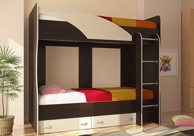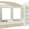 Двухъярусная кровать Мийа решает проблему малого пространства сочетая в себе целый ряд функций: спальное место для двоих и вместительные выдвижные ящики под кроватью.