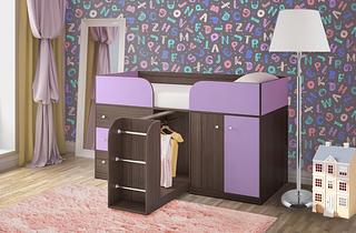 Материалы, используемые при изготовлении: Ламинированная ДСП, края лестницы, борта кровати декорированы противоударной кромкой ПВХ. На цветных фасадах: цвет кромки - бежевый.