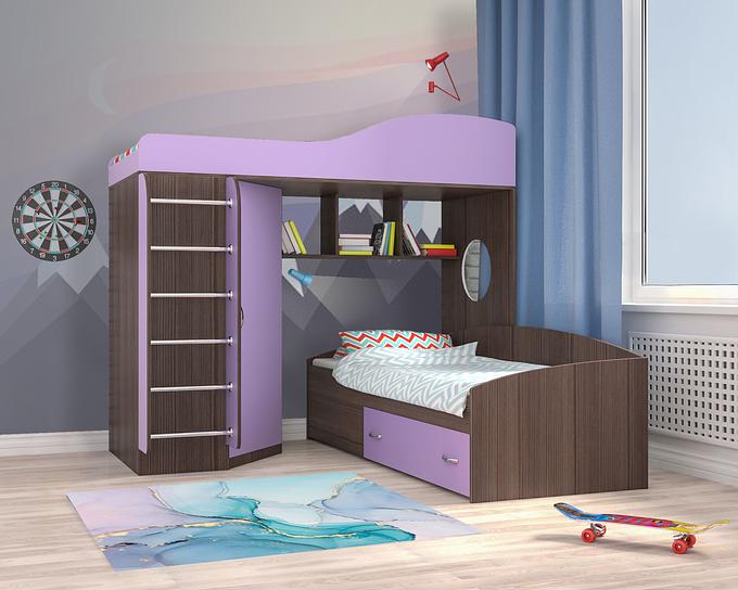 Кровать чердак Кадет 2 оснащен двумя спальными местами, металлической лестницей и угловым шкафом для одежды и белья. Данная модель подойдет как для детей младших классов, так и для детей более старшего возраста. Такая кровать поразит вас своей компактностью, вместительностью и практичностью.