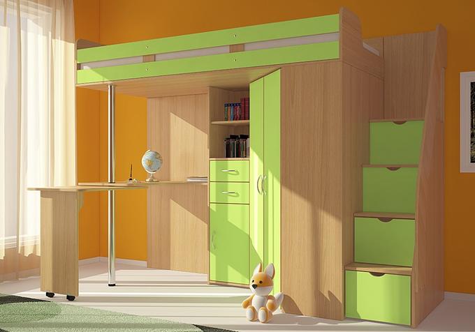 Кровать чердак Мийа - уникальная модель, которая непременно понравится своей комфортностью, оригинальностью и многофункциональностью всем членам семьи. Несмотря на обилие функциональных предметов, этот комплекс выглядит аккуратно.