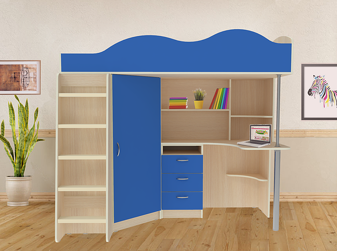 Ваш ребенок по достоинству оценит комфорт, который несет вам кровать-чердак с рабочей зоной Пионер. Кровать чердак Пионер - это удобная и компактная мини детская комната для Вашего ребенка со спальным местом наверху и рабочей зоной внизу.