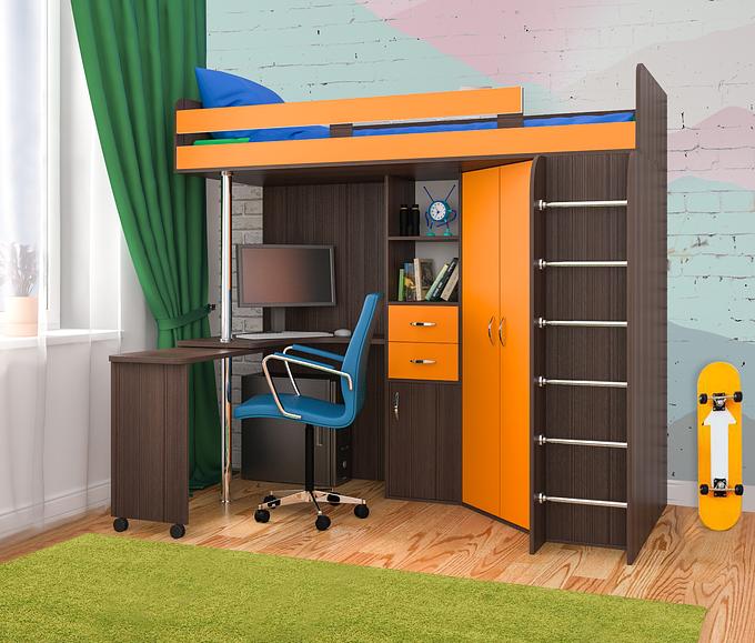 Такая детская мебель является максимально удобной, соединяя в оригинальный комплект большое спальное место, удобное место для уроков и большой шкаф для одежды. Подойдет такой комплект для мальчика и девочки, ведь разнообразие расцветок может быть составлено в соответствии с вкусовыми предпочтениями ребенка и выбранной тематикой.