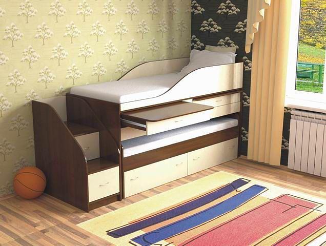 При небольших габаритах кровать "Дуэт-8" совмещает в себе все самое необходимое. Отличительной особенностью данной двухъярусной кровати служит то, что нижняя кровать выдвижная, и в течении дня она не будет занимать дополнительного места. Колеса на кровати прорезиненные и не будут создавать шум при движении. Пока днем кровать не нужна, она вдвинута в комплекс, а на её место можно выдвинуть столы, за которыми удобно делать уроки.
