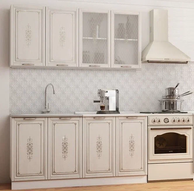 Цвет: Сандал белый матовый с фотопечатью Корпус гарнитура изготовлен из белого ЛДСП. Фасады МДФ в цвете сандал белый матовый с фотопечатью. Гарнитур состоит из: Верхний шкаф с 2 дверцами 800 Верхний шкаф с 2 дверцами (стекло с фотопечатью) Высота модулей 720, глубина 320 Шкаф под мойку 800 (Мойка накладная 800*600 приобретается отдельно) Шкаф нижний с двумя дверцами 800 Глубина нижних модулей 445 мм и высота 845 Столешница 800/600 в цвете Антарес Возможность дополнить модулями: нет