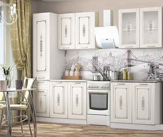 Цвет: сандал белый матовый с фотопечатью. Корпус гарнитура изготовлен из белого ЛДСП. Фасады МДФ в цвете сандал белый матовый с фотопечатью. Гарнитур состоит из Шкаф верхний с двумя дверцами 800 Шкаф верхний с двумя дверцами 800 (стекло с фотопечатью) Высота модулей 720, глубина 320 Шкаф под мойку 800 (мойка накладная 800*600 приобретается отдельно) Шкаф нижний с двумя дверцами 800 Глубина нижних модулей 445 мм и высота 845 Столешница 800/600 в цвете Антарес. Пенал ГЛУХОЙ БЕЗ СТЕКЛА: в-2140, ш-400, г-580. Возможность дополнить модулями: нет