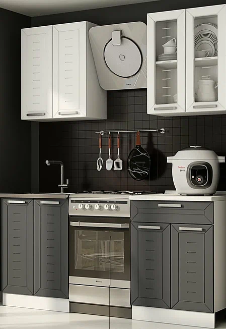 Цвет: Белый матовый/ Софт Графит Кухонный гарнитур изготовлен корпус ЛДСП - белое. Фасады МДФ. Модули у гарнитура 600мм Верхние модули МДФ в цвете Белый матовый. Шкаф с 2 дверцами 600мм Шкаф с 2 дверцами (стекло прозрачное с фотопечатью) 600мм глубина модулей 320 и высота 720 Нижние модули в цвете Софт Графит. Шкаф под мойку 600 (мойка накладная 600*600 приобретается отдельно) Шкаф с ящиком и дверцами 600 (выдвижной ящик на роликовых направляющих) со столешницей Антарес. Глубина нижних модулей 445 мм. и высота 845 Так же можем Вам предложить дополнительный модуль по цене 4610 руб. Модуль должен располагаться над плитой ШВГ 600 в цвете белый матовый. Возможность дополнить модулями: да