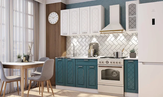Цвет: белое дерево/изумрудное дерево Корпус гарнитура изготовлен из белого ЛДСП . Фасады изготовлены из МДФ. С фрезеровкой. Верх - Белое дерево Низ - изумрудное дерево Верхние модули высотой 720 мм, глубиной 320 мм. Ширина модулей 600+600+300. ШВ 300 с прозрачным стеклом с пескоструем. Нижние модули: Высотой 845 мм, глубиной 445 мм и шириной 600+600+300. Один из модулей 600 оснащен выдвижным ящиком на роликовых направляющих. Столешница "антарес" Мойка в стоимость не входит Модуль под мойку предусмотрен для установления накладной мойки с размером 600*600. Возможность дополнить модулями: нет
