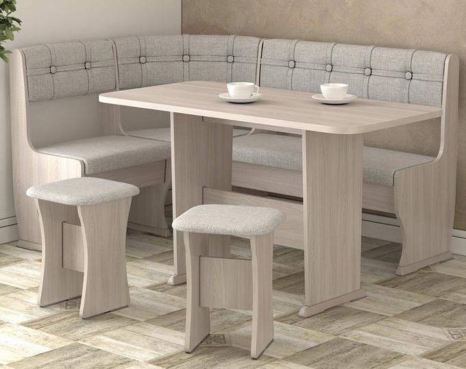 Скамья угловая: 1500*800*1060 мм Стол: 1200*730*600 мм Табурет: 340*440*340 (2 шт.)