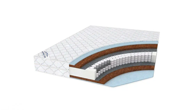 Состав: Блок независимых пружин TFK Термовойлок Пенополиуретан 1 см Нат. кокосовая койра 3 см Короб по периметру Чехол: жаккард хлопковый, стеганный на синтепоне