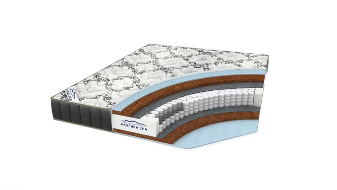 Блок независимых пружин TFK Термовойлок Пенополиуретан 1 см Нат. кокосовая койра 3 см Короб по периметру Чехол: трикотаж объемный Black and White