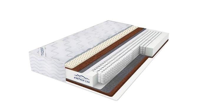 Состав Натуральный латекс 2 см Био кокос 1 см Термовойлок. Блок независимых пружин TFK. Термовойлок Био кокос 2 см. Короб по периметру Чехол: хлопковый жаккард , стеганный на синтепоне. Жесткость: Строна А - средняя , Сторона В – жесткий.