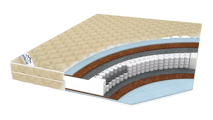 Блок нез. пружин мультипакет Термовойлок Меморифом 4 см Нат.кокосовая койра 1 см Короб по периметру Чехол: трикотаж, стеганый на синтепоне 300 гр