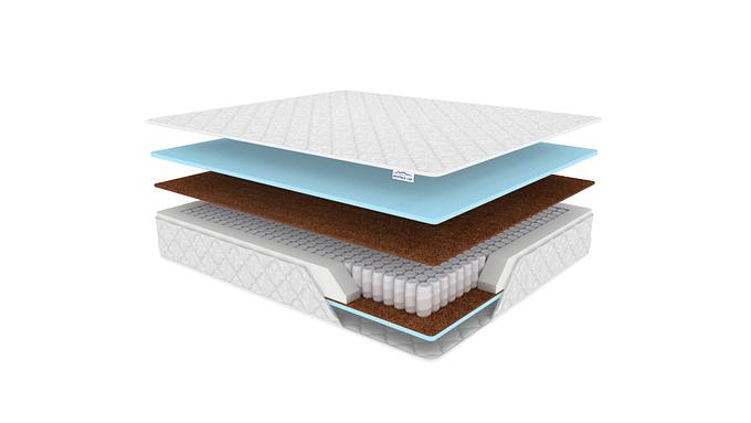 Состав Пена 2 см, Би кокос 1 см, Блок независимых пружин, Би кокос 1 см, Пена 2 см , Чехол Трикотаж, Ультразвуковая стежка на синтепоне.