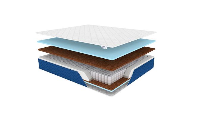 Состав Пена 2 см Би кокос 2 см Блок независимых пружин Би кокос 2 см Пена 2 см Чехол Трикотаж на синтепоне, берлет синий