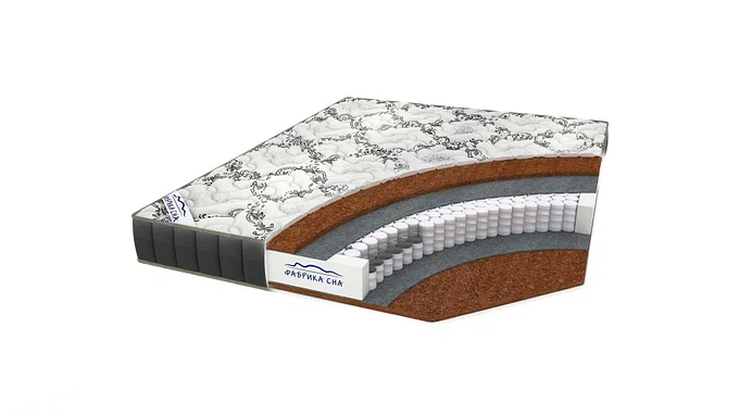 Блок независимых пружин TFK Термовойлок Нат. кокосовая койра 2 см Короб по периметру Чехол: трикотаж объемный Black and White