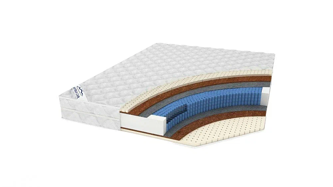 Блок независимых. пружин мультипакет Термовойлок Натуральный латекс 2 см Нат. кокосовая койра 1 см Короб по периметру Чехол: трикотаж, стеганый на синтепоне 300 гр
