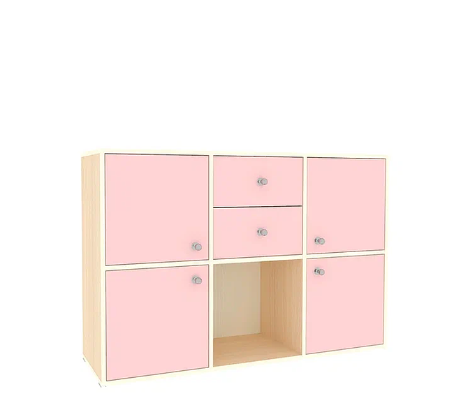 Мебель изготовлена из ЛДСП. Борта декорированы противоударным кантом. На цветных фасадах светло-бежевая кромка.