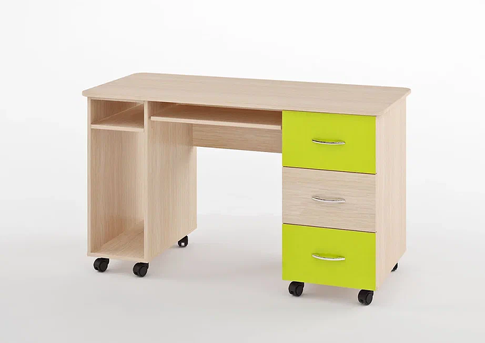 Мебель изготовлена из ЛДСП. Борта декорированы противоударным кантом. Все цветные фасады со светло-бежевой кромкой.
