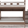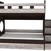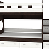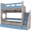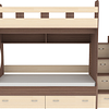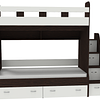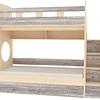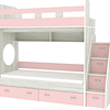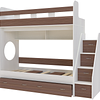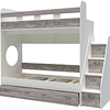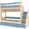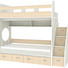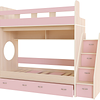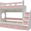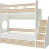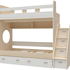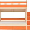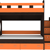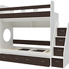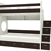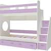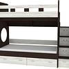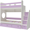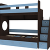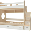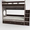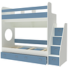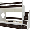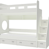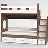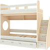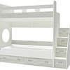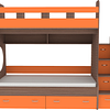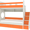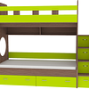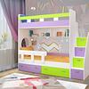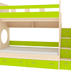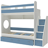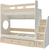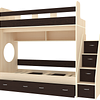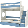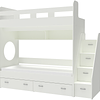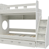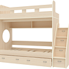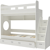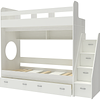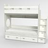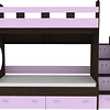 Трехъярусная кровать чердак Юниор решает проблему малого пространства сочетая в себе целый ряд функций: спальные места для троих, навесная полка для книг и игрушек, вместительный выдвижной ящик под кроватью может использоваться для хранения или как дополнительное спальное место, а так же приставная лестница расположенная сбоку, обеспечивающая быстрый и безопасный доступ на второй этаж, с безопасными ступенями в виде выдвижных ящиков.
